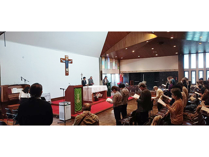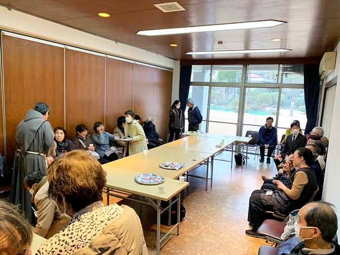 キリスト教一致祈祷週間(1/18~25)2日目の1月19日(日)午後2時、カトリック鶴見教会にて、キリスト者の一致を祈る鶴見地区一致祈祷会が開催されました。43回目を迎えた今年は日本キリスト教会鶴見教会/カトリック鶴見教会/日本聖契キリスト教団鶴見聖契キリスト教会の3教会が参加しました。この小さな集いがキリスト者の一致への軌跡となっていることは間違いありません。今年の一致祈祷週間のテーマは、「あなたは このことを信じますか」(ヨハネ11:26参照)。聖書朗読の後、高松牧人牧師(日本キリスト教会鶴見教会)の「復活といのちの主」の奨励を受けました。カトリック、プロテスタントの壁を越えて、共に祈りをささげました。集会後、懇親会をいたしました。